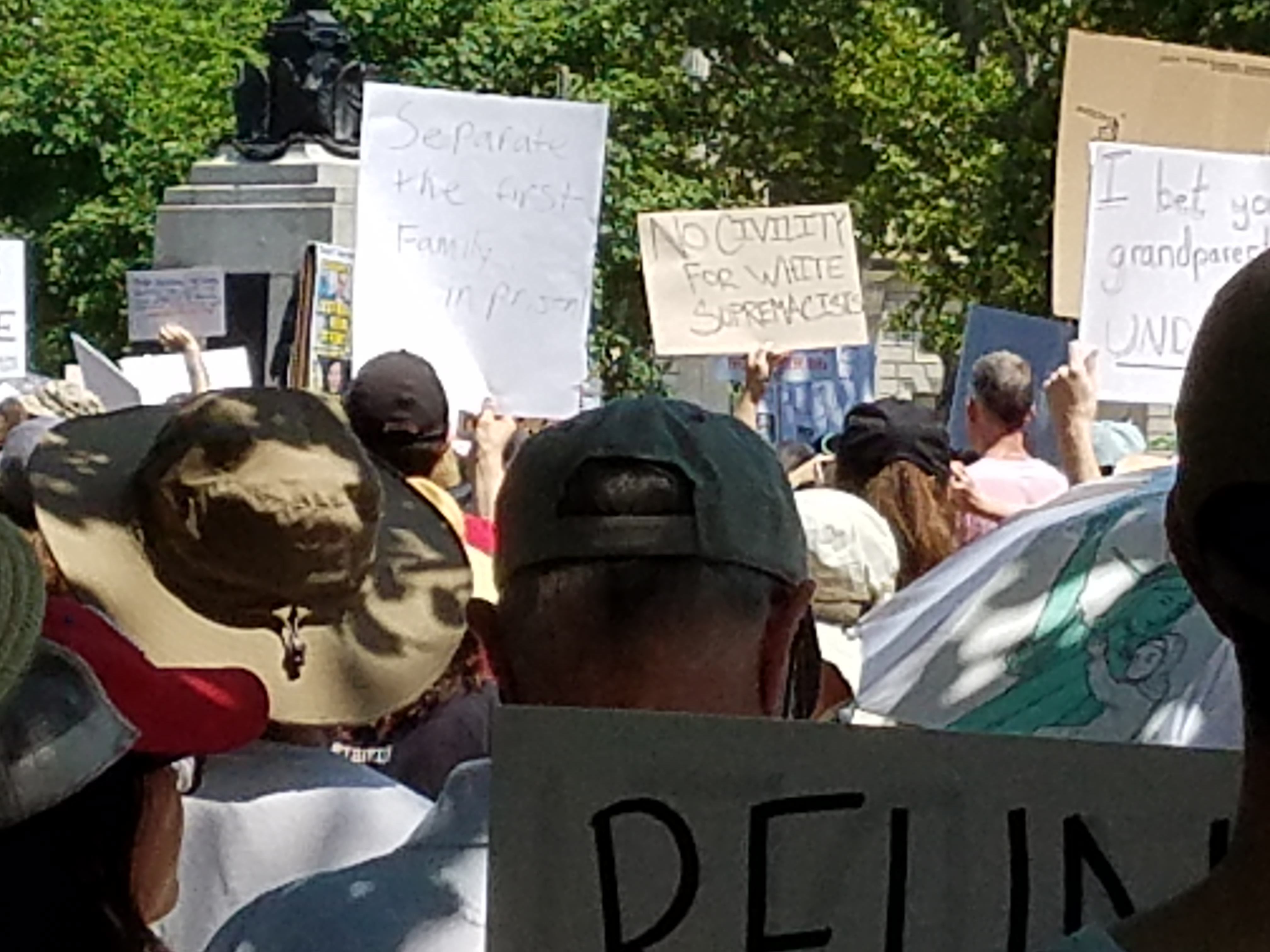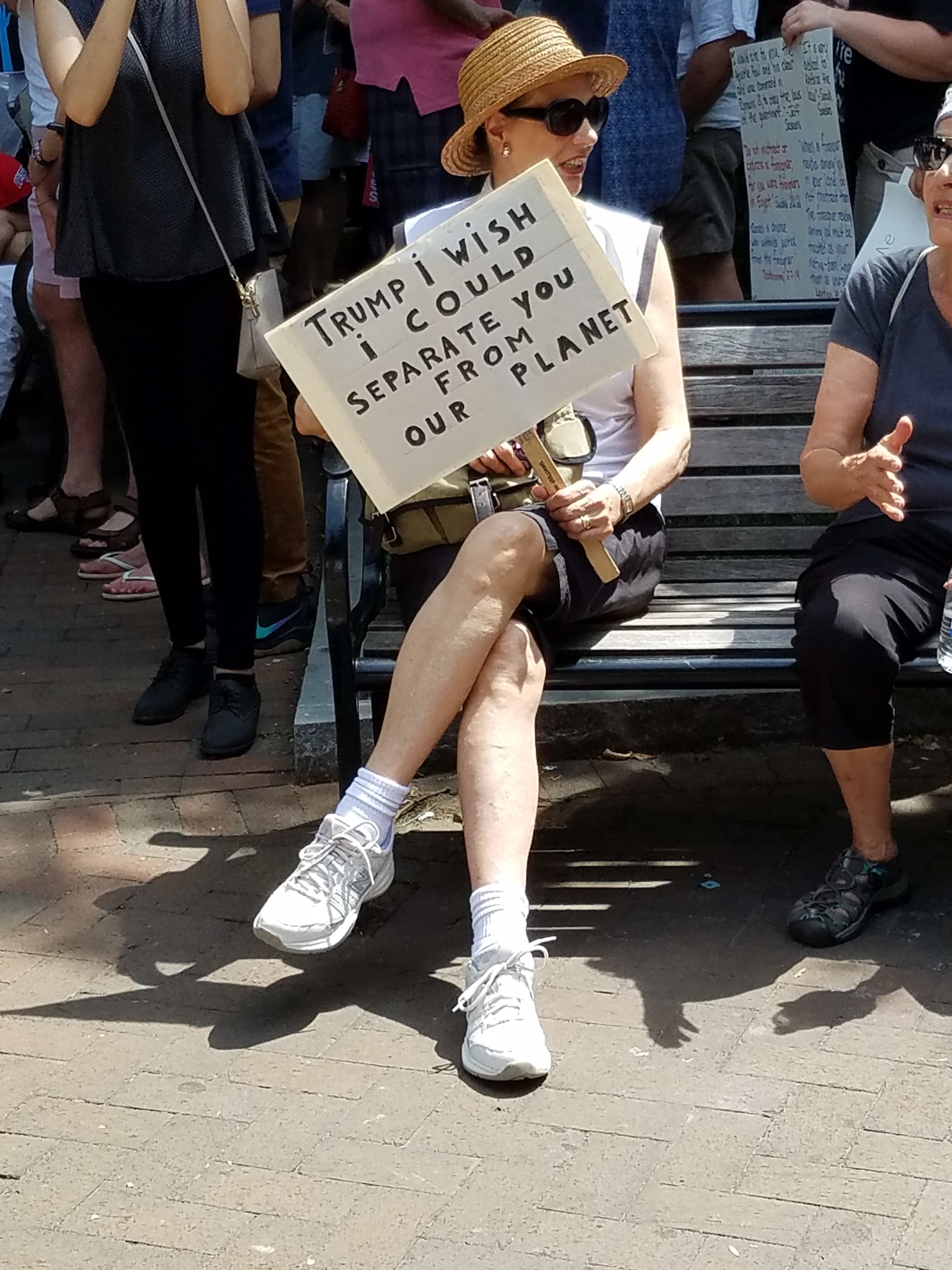 Carol and I attended the rally and when it was over we went to a nice place to have a small lunch. The room was air conditioned and the food was good and I had a wave of guilt – here I was eating and enjoying myself and at the same time there were adults and children placed in internment camps, given little or no rights to seek asylum, and kept for undetermined lengths of time. I realize that it was privilege that allowed me to do this and it strengthened my determination to continue to speak out, donate money, vote and do as much as I can do to stop this inhumane treatment. I will be including some suggestions for readers to continue similar actions at the end of this entry.